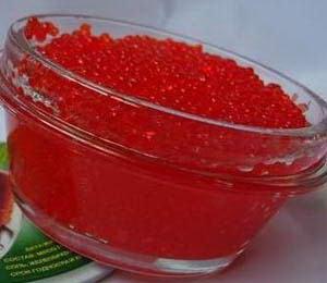 色泽鲜艳,营养丰富大马哈鱼子酱,由大马哈鱼成鱼卵盐渍而成。一条四龄成雌鱼产卵3500-5000粒,每粒大若黄豆,如红玛瑙一样丹朱鲜亮晶莹剔透,含有丰富的磷酸盐、钙质维生素Atx和维生素D,每三粒相当于一枚鸡蛋的营养值。大马哈鱼又叫-鲑鱼,主要分布在太平洋北部小域的美、日、俄、加拿大和我国;属溯河洞游性鱼类,因其“江里生,海里长,复死于出生地”的习性,被人们誉为落叶归根回归故乡的海外赤子;上个世纪50年代及此前,我国绥芬河、图门和松花江与黑龙江上游还可以少见的洄游的大马哈鱼,80年代松花江中游和乌苏里江也不多见,近年在我国唯东极抚远所独产,且因抚远产的鱼子颗粒饱满,成熟期恰到时机,色正味淳,质优于日俄等国,不但国内紧俏,而且在欧洲市场也享有极高盛誉。