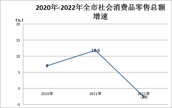 消费市场。全年社会消费品零售总额比上年下降2.6%。按经营地分,城镇消费品零售总额下降1.1%,乡村消费品零售总额下降13.5%;按行业分,餐饮业、住宿业、批发业分别下降17.5%、4.1%、5.5%,零售业增长0.2%。