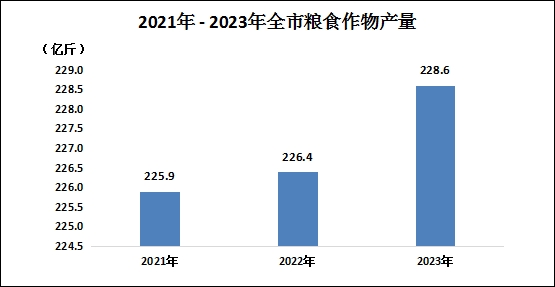 全年粮食产量228.6亿斤,同比增加2.2亿斤。其中,水稻产量124.5亿斤,减产15.2亿斤;玉米产量81.6亿斤,增产16.4亿斤;大豆产量22.4亿斤,增产1.0亿斤。