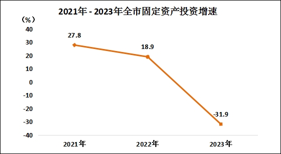 全年固定资产投资同比下降31.9%,按产业分,第一产业、第二产业、第三产业投资分别同比下降6.1%、42.3%和29.0%,占固定资产投资比重分别为8.9%、28.2%和62.9%。按经济类型分,国有控股投资、民间投资分别同比下降15.3%和50.5%,外商及港澳台投资同比增长66.3%,占固定资产投资比重分别为57.5%、37.7%和4.8%。