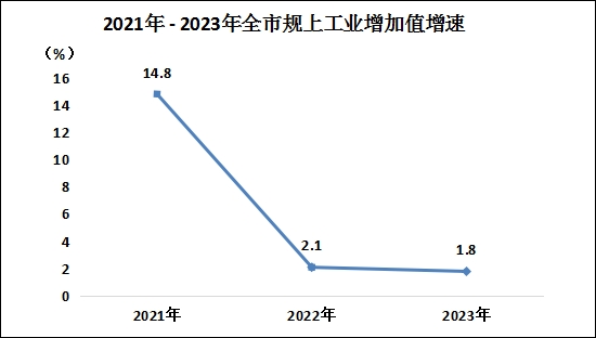 全年工业增加值为104.1亿元,同比增长0.7%。其中,规模以上工业实现产值456.7亿元,同比下降17.0%,规模以上工业增加值同比增长1.8%。六大主导行业增速呈现“三升三降”态势,装备制造、建材、能源等行业规上工业增加值分别同比增长30.7%、5.1%、7.9%;石化、医药、食品等行业规上工业增加值分别同比下降0.6%、3.3%、8.1%。