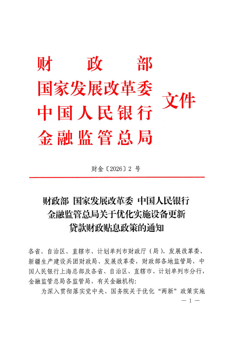 • 财政部 国家发展改革委 中国人民银行 金融监管总局关于优化实施设备更新贷款财政贴息政策的通知