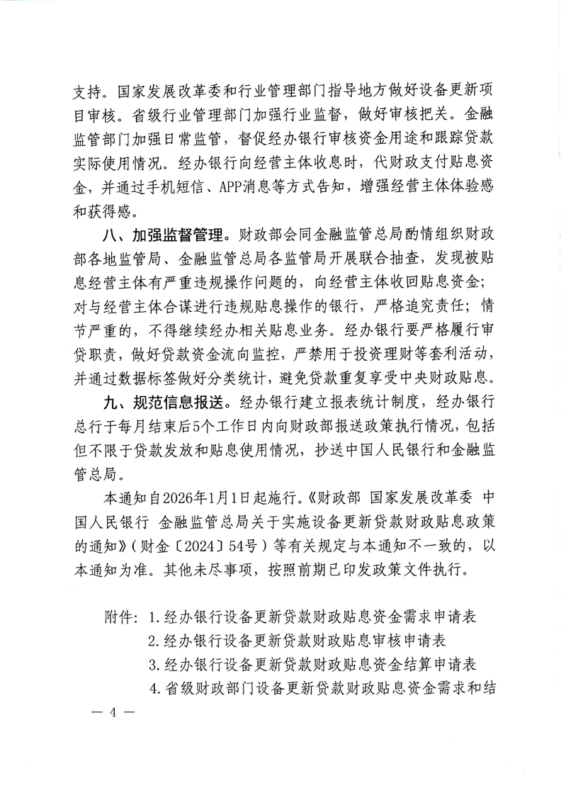 财政部 国家发展改革委 中国人民银行 金融监管总局关于优化实施设备更新贷款财政贴息政策的通知