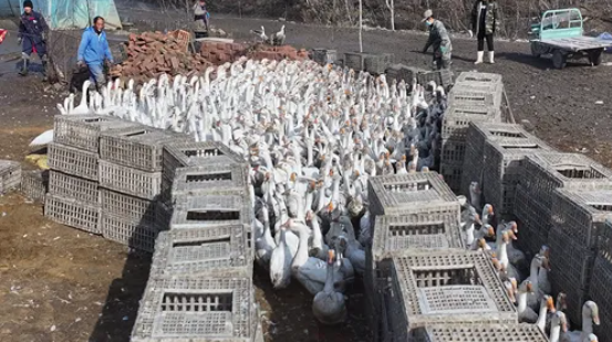 抚远市东极白鹅养殖基地迎来了大丰收,几十万只大白鹅编织出一幅生机勃勃的丰收盛景。