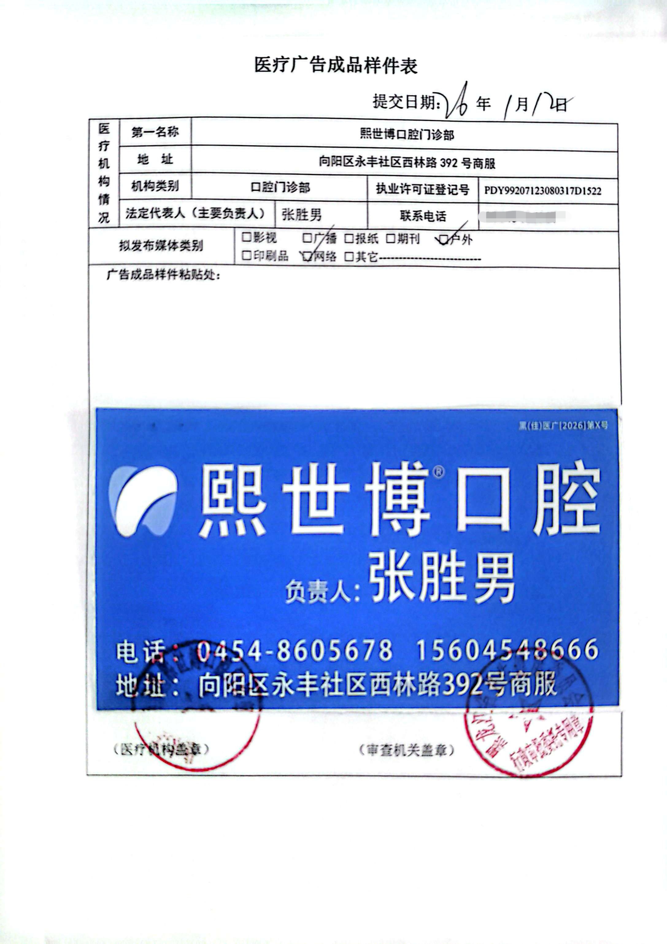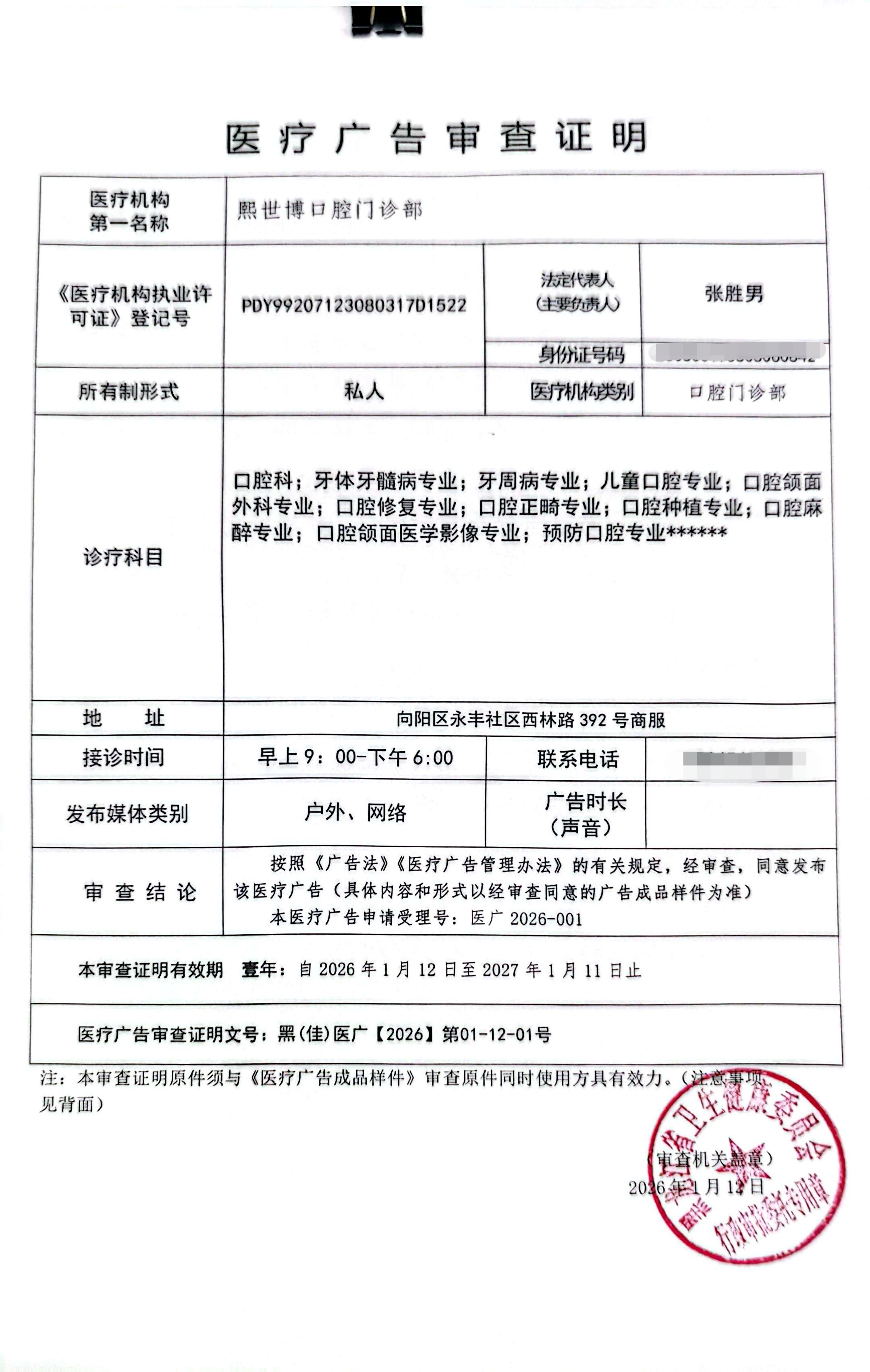 熙世博口腔门诊部2026-01医疗广告审批公示