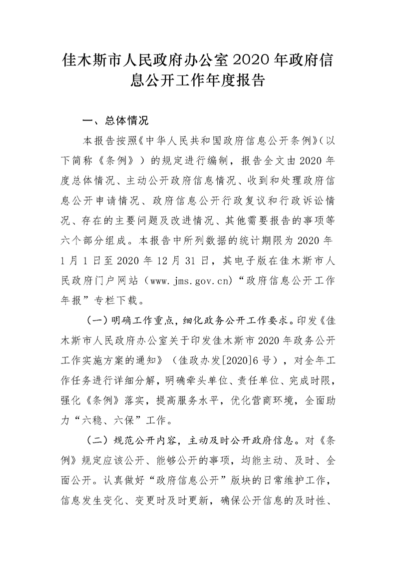 佳木斯市人民政府办公室2020年政府信息公开工作年度报告