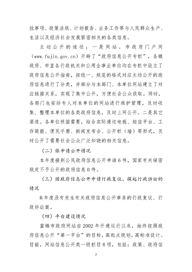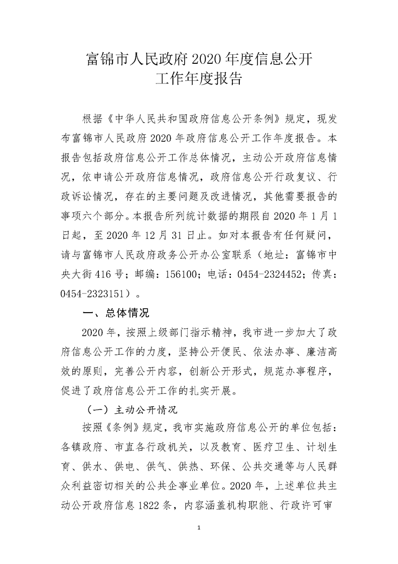 富锦市2020年政府信息公开工作年度报告