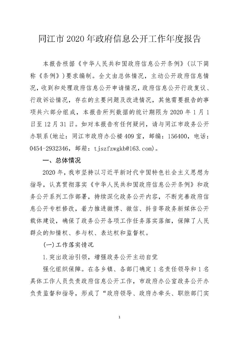 同江市2020年政府信息公开工作年度报告