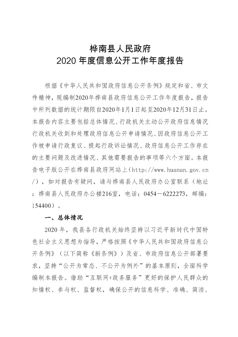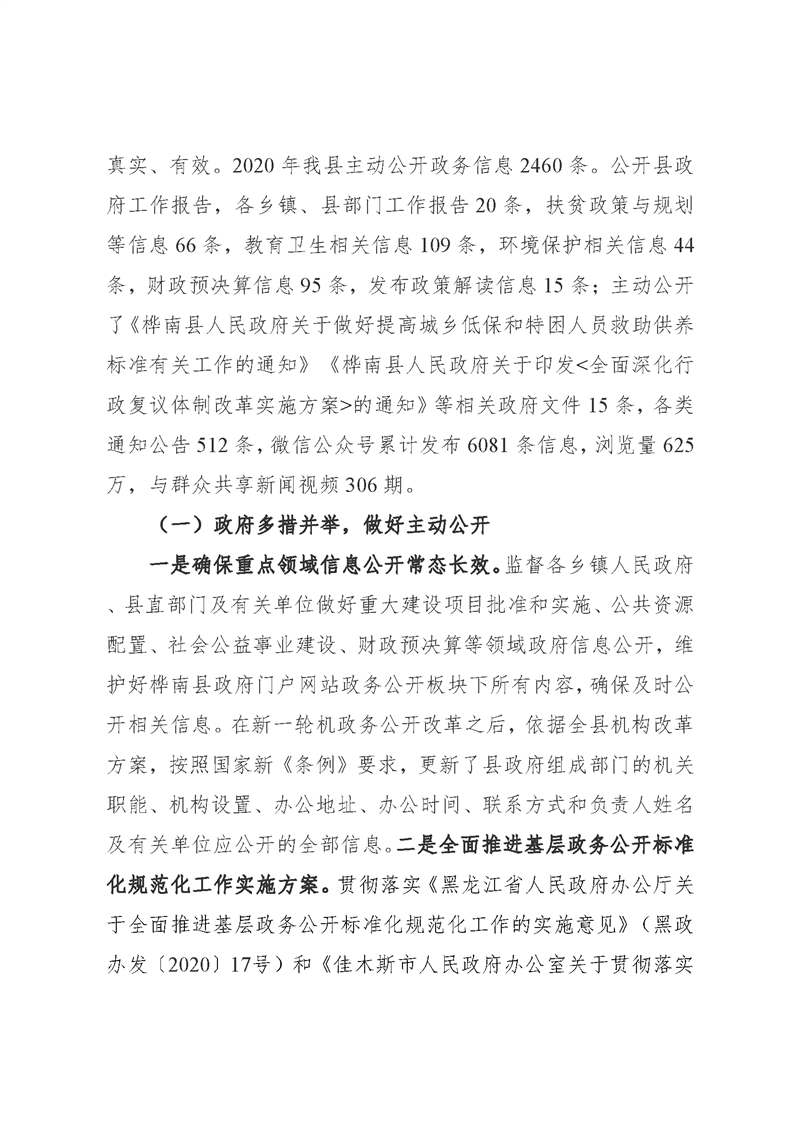 桦南县2020年政府信息公开工作年度报告