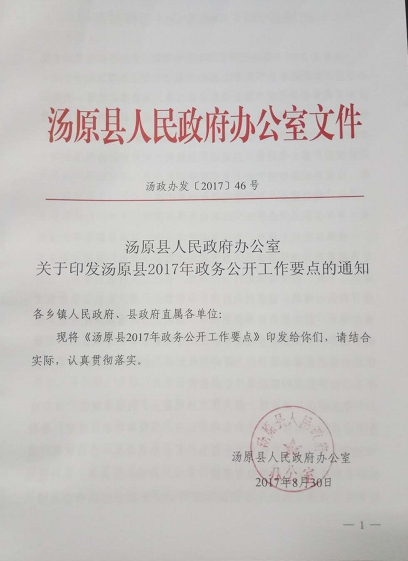 2017年,汤原县政务公开工作在省、市政务公开办的精心指导下,严格贯彻落实《政府信息公开条例》和省市有关文件精神,推进决策、执行、管理、服务、结果“五公开”,主动做好政策解读,积极扩大公众参与,及时回应社会关切,印发了《汤原县2017年政务信息公开工作要点》,对公开事项逐项分解,细化到牵头单位和责任部门,确保了政务公开工作扎实有效开展。