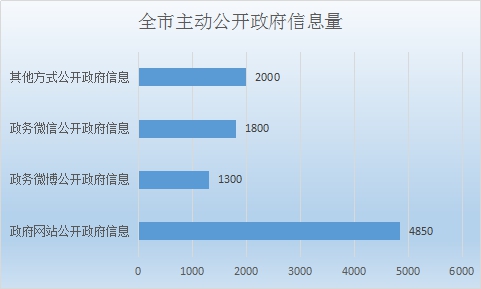全年市政府网站公开各类信息近万条,政府网站公开政府信息数4850条,政务微博公开政府信息数1300条,政务微信公开政府信息数1800条,其他方式公开政府信息数2000条。