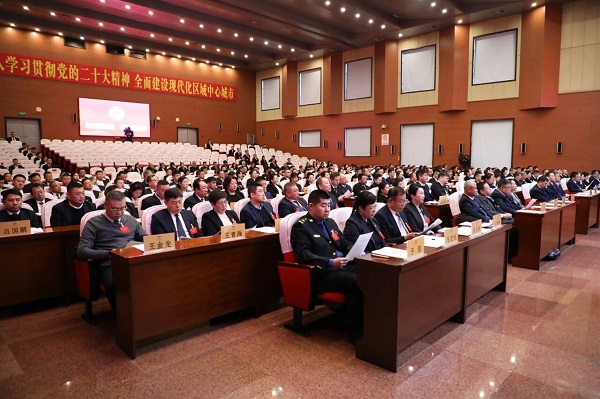 王铁、宫秀丽、张英会、何大海、马新辉、李佶、徐铭、聂影、崔一博、杨英涛等市领导在主席台上就座。