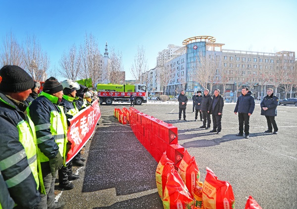 王铁来到会展中心环卫作业现场,与一线环卫工人亲切交谈,仔细询问日常作业、防寒保暖保障等情况,充分肯定他们守护全市市容环境的无私精神,叮嘱大家在严寒天气做好防寒保暖、注意作业安全。他强调,相关部门要合理安排轮班值守,落细落实后勤保障,抓实重点区域保洁工作,努力营造整洁祥和的新春环境。