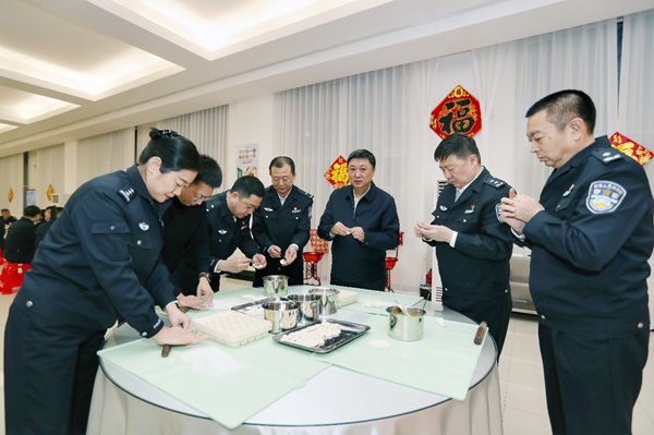 16日晚,王铁来到市公安局看望慰问除夕夜坚守一线的公安干警,与值班公安干警一起包饺子,共话春节。他说,过去一年,市公安局在市委、市政府的坚强领导下,全体公安干警忠诚履职、扎实工作,在护航亚冬、旅发大会等工作中成效突出,希望全体公安干警继续保持昂扬战斗状态,从严从实抓好安保各项措施落实,全力守护全市社会治安大局稳定,为建设现代化佳木斯贡献新的更大公安力量。