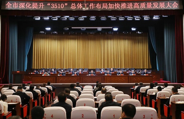 2月26日上午,全市深化提升“3510”总体工作布局加快推进高质量发展大会召开。市委副书记、市长王铁出席会议并讲话,强调要深入学习贯彻习近平总书记重要讲话重要指示精神,紧紧围绕深化提升“3510”总体工作布局,锚定目标、加压奋进,以锐意开拓的闯劲、砥砺前行的韧劲,激流勇进、破局突围,为奋力谱写中国式现代化佳木斯实践新篇章作出新的更大贡献。