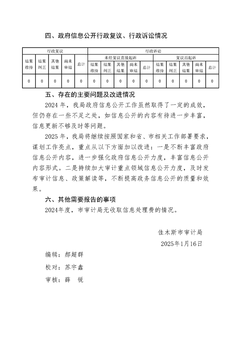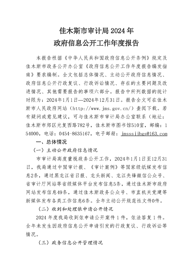 佳木斯市审计局2024年政府信息公开工作年度报告
