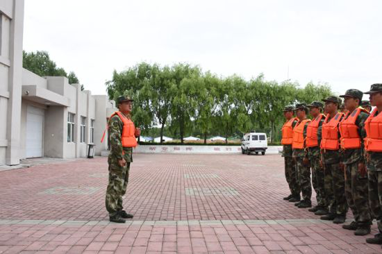 图为马守奎组织战士开展防汛演练