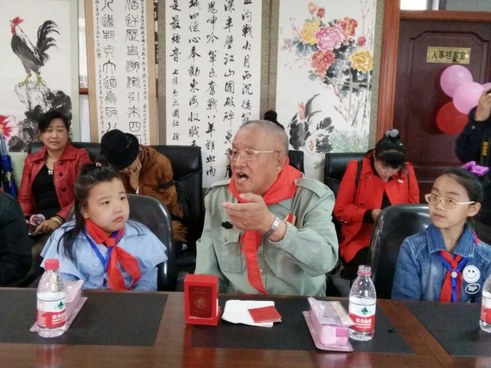 会上, 孩子们亲手为在场的12名离退休老兵戴上红领巾,象征着孩子们会将红色精神传承下去。邀请军队离退休老干部代表讲述革命历史。陶玉老兵今年87岁高龄,曾参加过解放战争和抗美援朝战争,退休前曾任解放军第三十九军卫生处副处长。他向小记者们讲述了战争时期的亲身经历,陶玉老人生动的讲述,为小记者们上了一堂难忘的传统教育课。孩子们为爷爷奶奶们献上了精彩的文艺节目。孩子们都说,这是他们参加过的最有意义的儿童节活动。