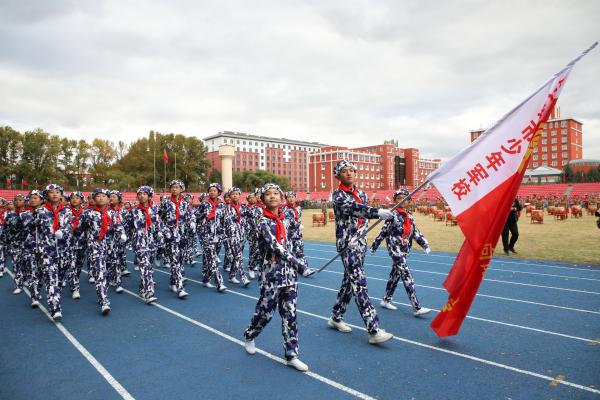“少年强则国强,少年健康则国健康”。14时,国旗护卫队迈着整齐的步伐护送国旗入场,全体人员肃立,升国旗、奏唱国歌、行注目礼。随后,市委书记、佳木斯军分区党委第一书记丛丽宣布分列式及会操表演正式开始,伴随着雄壮的《分列式进行曲》,各方队精神抖擞、口号嘹亮、昂首挺胸走过主席台接受检阅,他们以挺拔的军姿和高昂的士气展示了传承红色基因、赓续红色血脉的新时代青年人的蓬勃朝气和昂扬风貌。军事科目汇报表演中,同学们先后进行了精彩的战鼓操、团体操及军体拳、队列动作、战术对抗、战场救护、射击演示、障碍跑等科目展示,行动整齐迅速、动作规范标准、精神饱满高昂,赢得了全场观众阵阵喝彩,充分展示了全市少先队员良好的军事素养和积极向上的精神风貌。