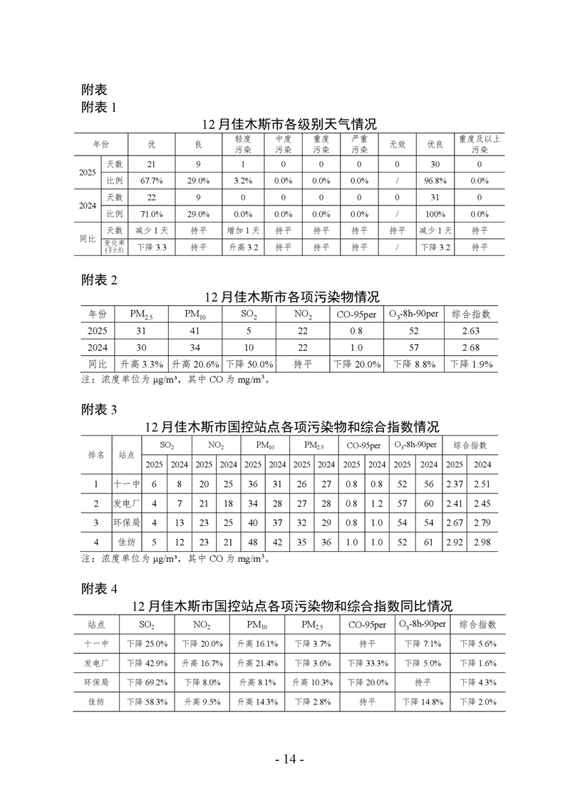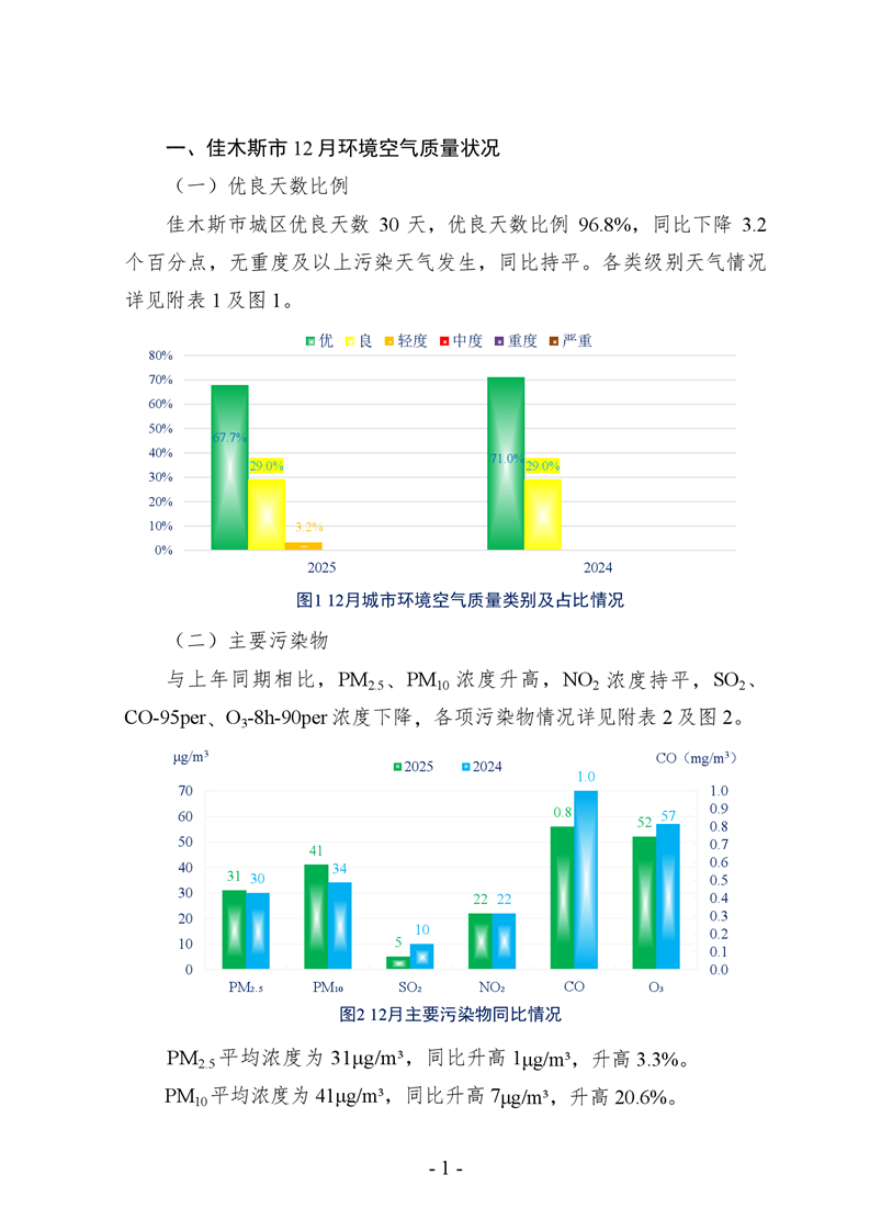 佳木斯市空气质量报告(2025年12月)